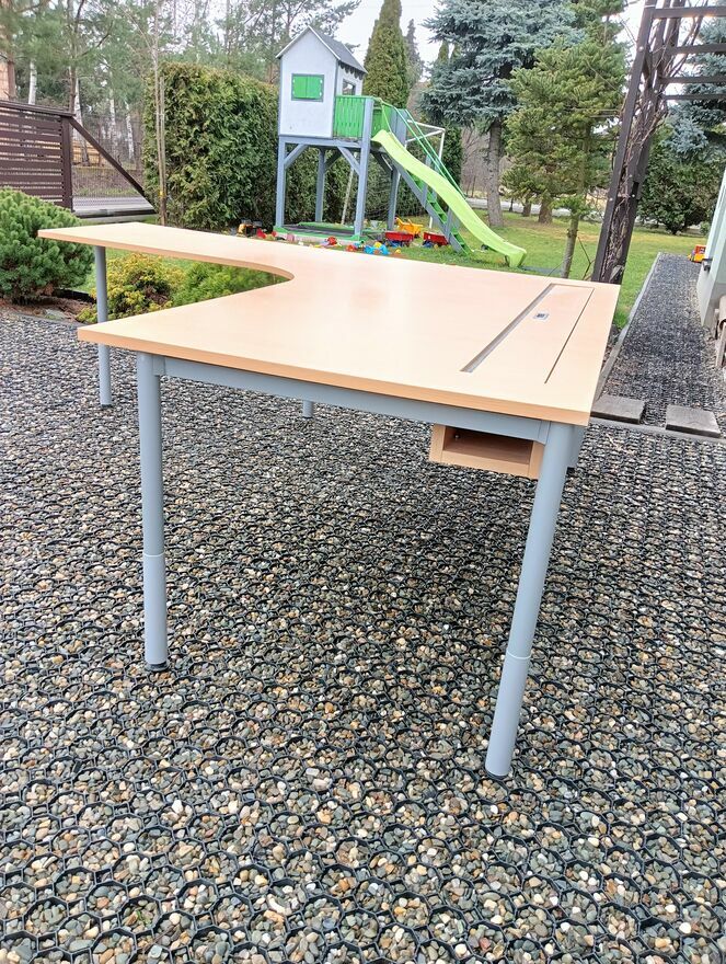 WitamSprzedam duże biurko narożne 200cm x 180cm wysokość 70cm (można dość sporo podregulować na nogach) Dokładne wymiary na zdjęciu. Biurko można wykorzystać w domu w biurze lub w warsztacie. Posiada kanał, w którym można schować przewody.