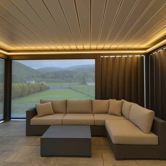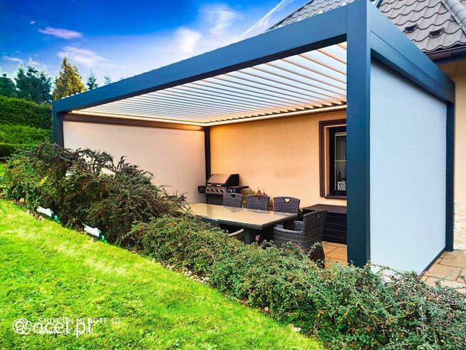 Nowoczesna, aluminiowa automatyczna pergola z oświetleniem LED. *Wymiar prezentowanej pergoli 3000mmx3000mm z ...