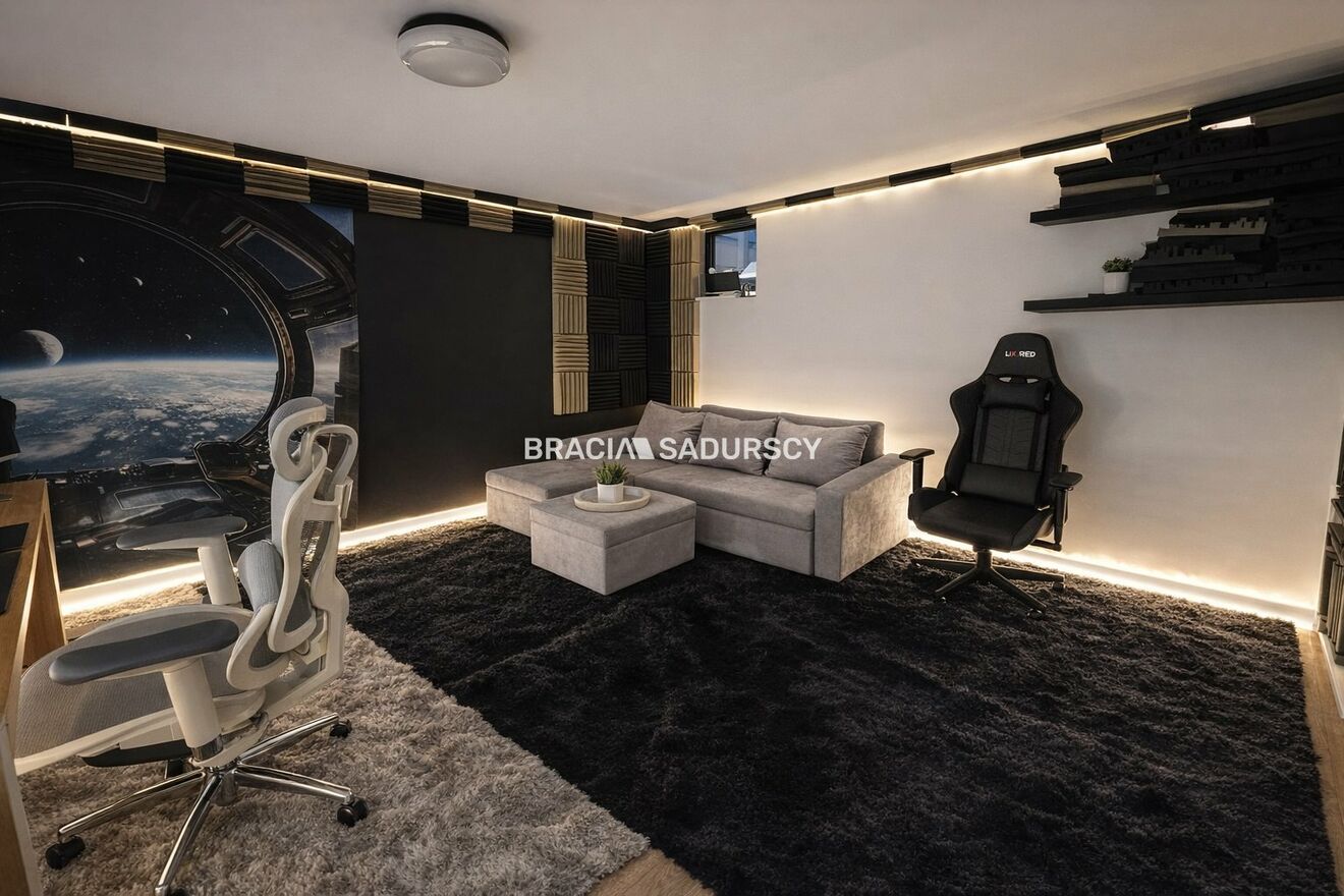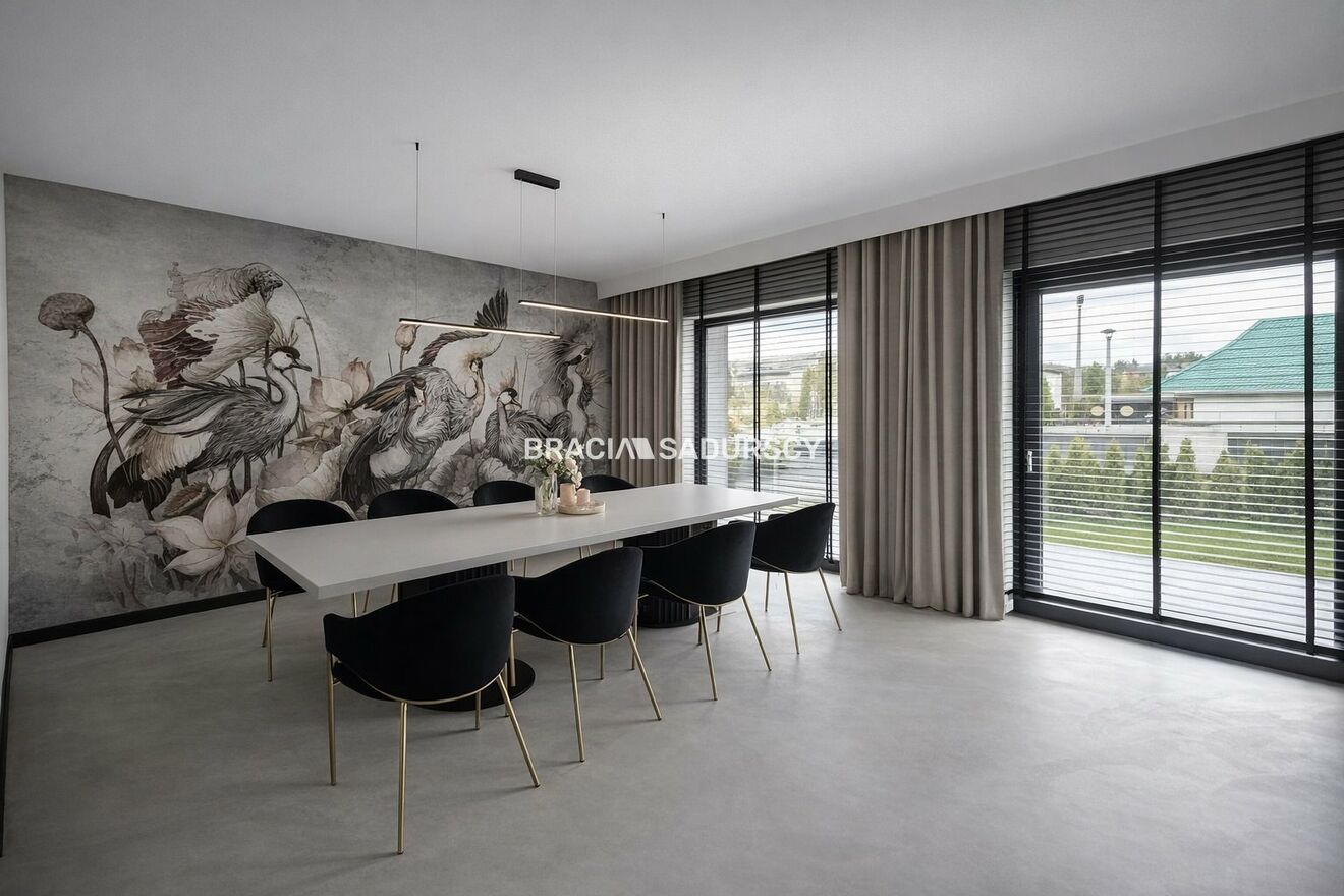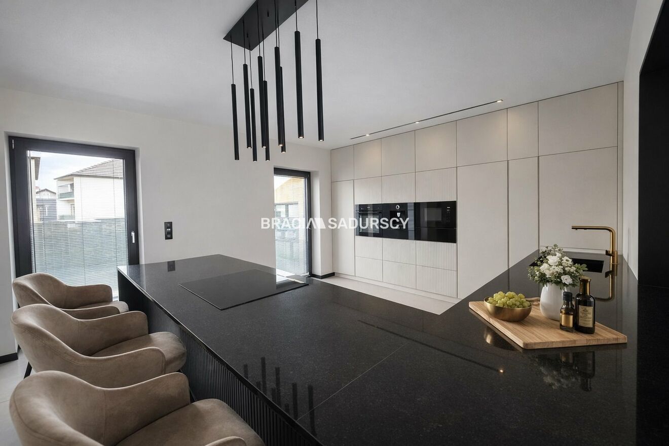 Dom został wykończony w wysokim standardzie z dbałością o detale. Funkcjonalny układ pomieszczeń zapewnia komfort zarówno dla dużej rodziny, jak i osób pracujących z domu.