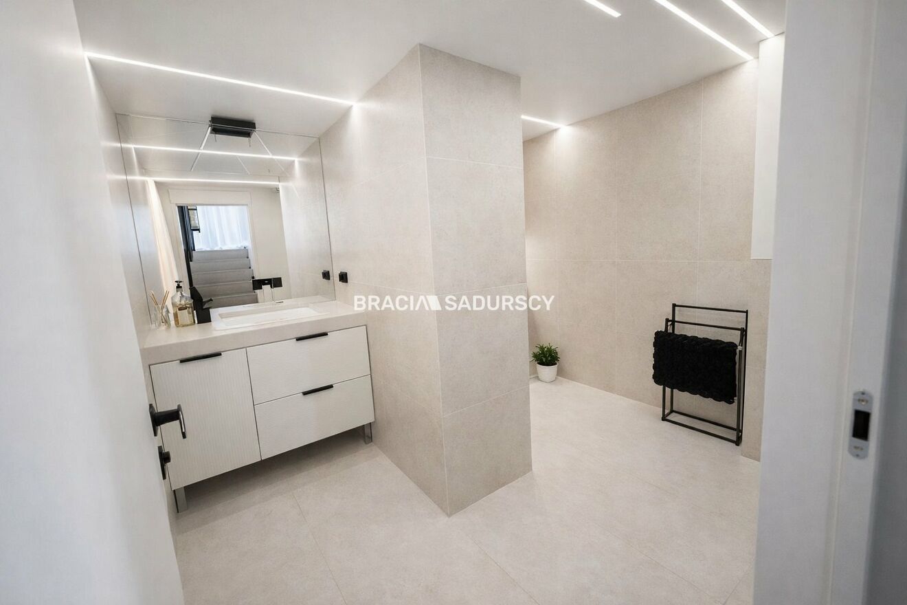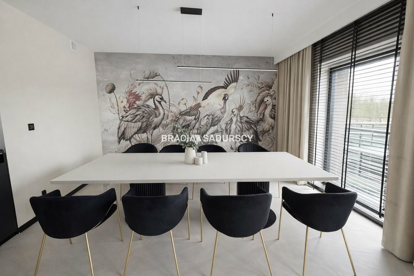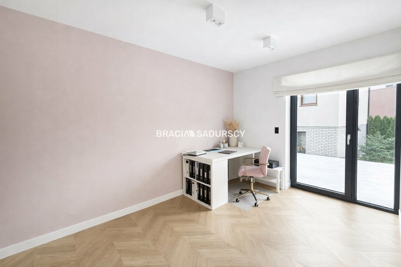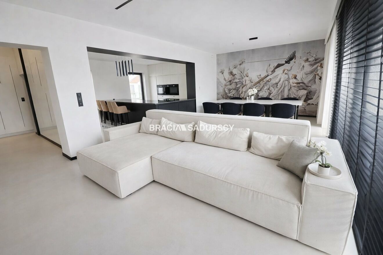 Dom został wykończony w wysokim standardzie z dbałością o detale. Funkcjonalny układ pomieszczeń zapewnia komfort zarówno dla dużej rodziny, jak i osób pracujących z domu.