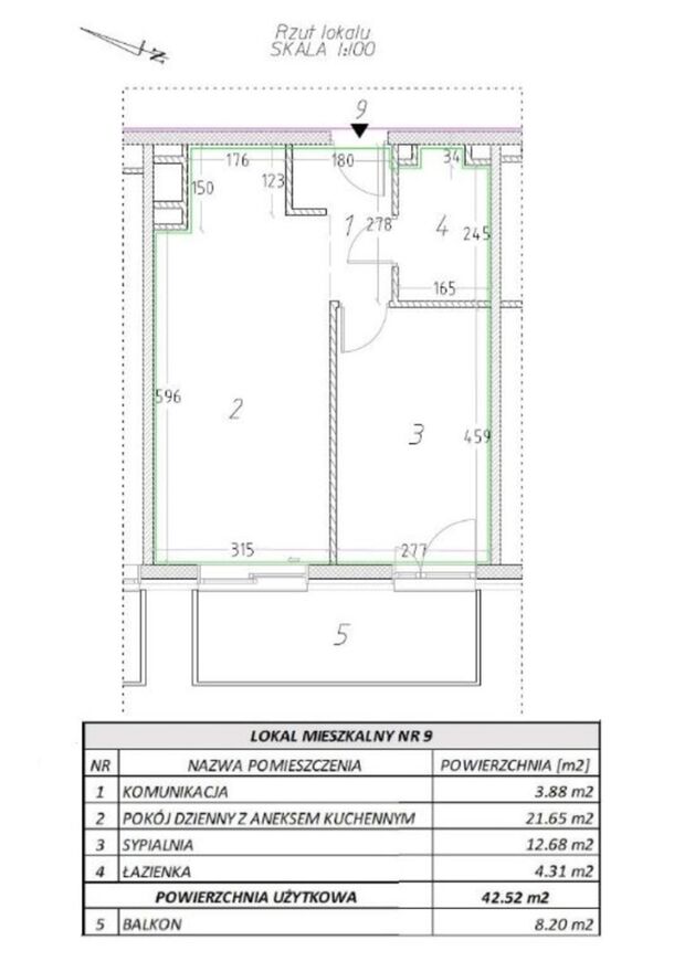 Mieszkanie 2-pok 42,52 m² balkon klima garaż kom