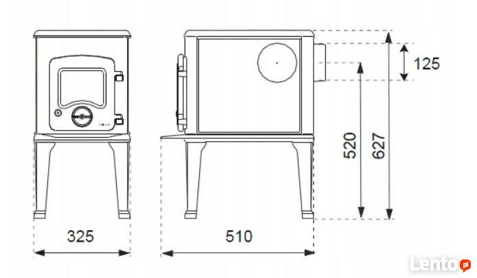 * piec żeliwny z żaroodporną szybą, z systemem wtórnego spalania