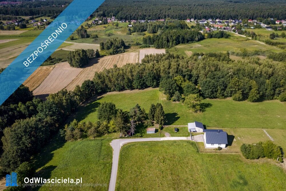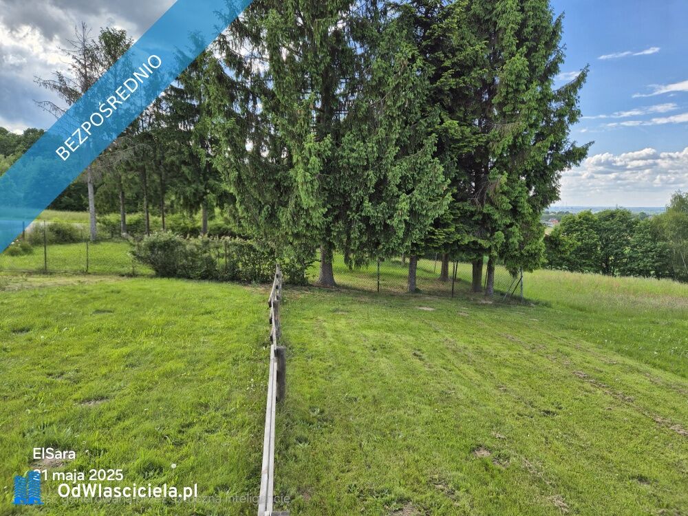 Kształt działki zbliżony do litery „L”, szerokość 80 m, częściowo nachylona. Uzbrojenie – gaz, energia elektryczna przy działce, woda ok 70 m. Brak kanalizacji.